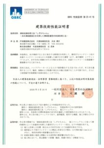 建築技術性能証明書凍結杭頭処理工法「しずかちゃん®」は、一般財団法人 日本建築総合試験所(GBRC)の建築技術性能証明取得を取得しました。